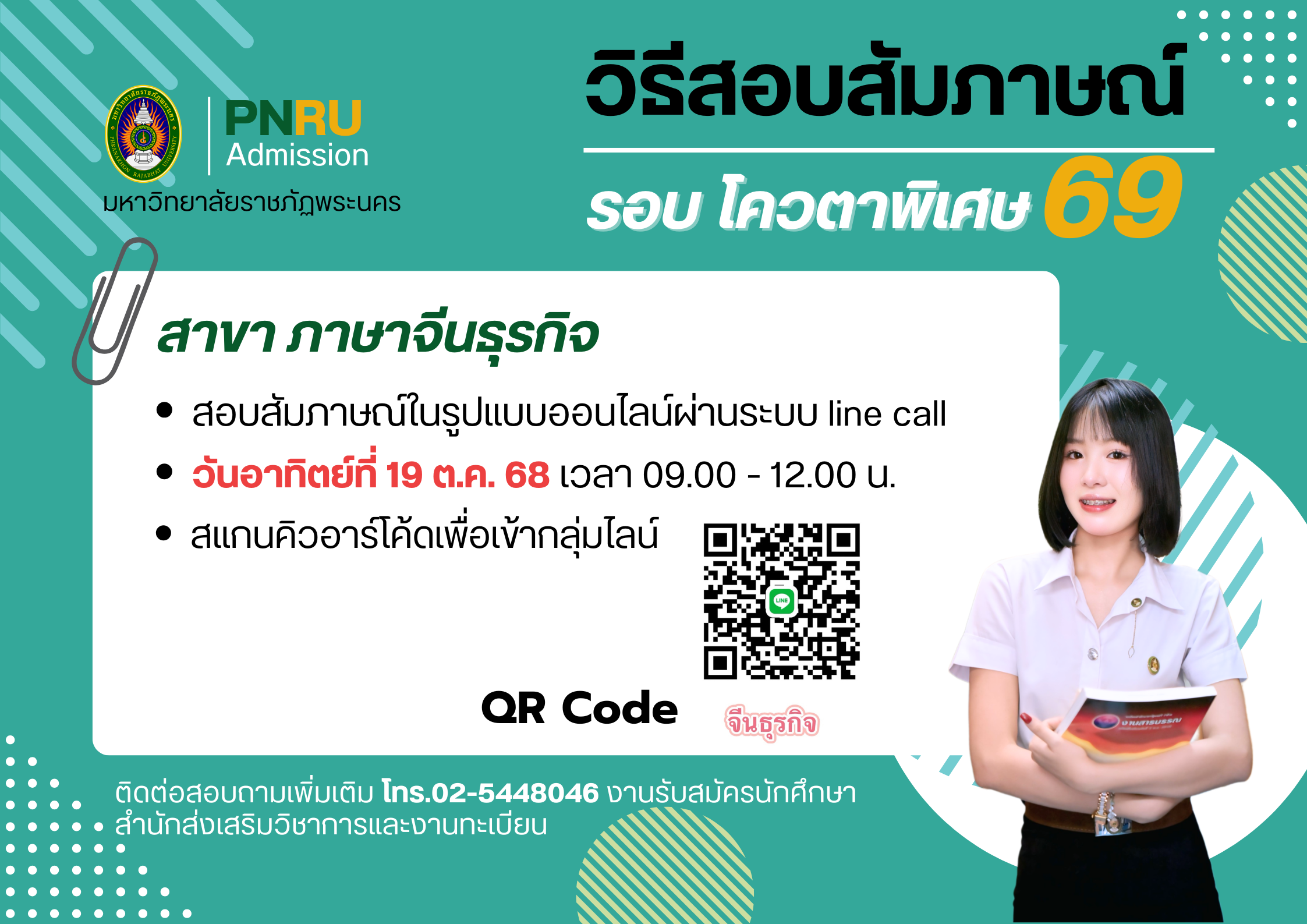 นางสาวพิรานันท์ เพชรเกิด | วัน: 19-ต.ค.-68 เวลา: 09.00 - 12.00 น. ห้อง: สัมภาษณ์ออนไลน์ผ่านระบบ line call สถานที่: รายละเอียดดังหมายเหตุด้านล่าง |